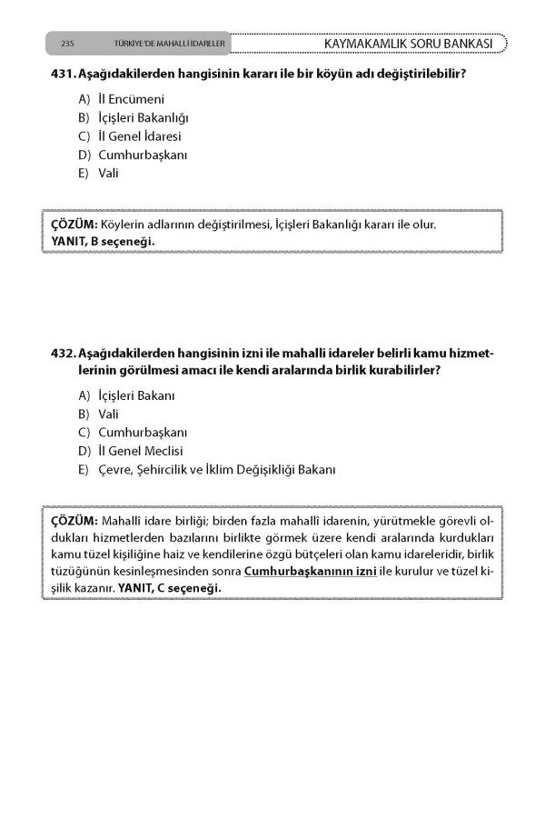 Kaymakamlık Soru Bankası Mahalli İdareler isimli çalışmamı idealist biçimde